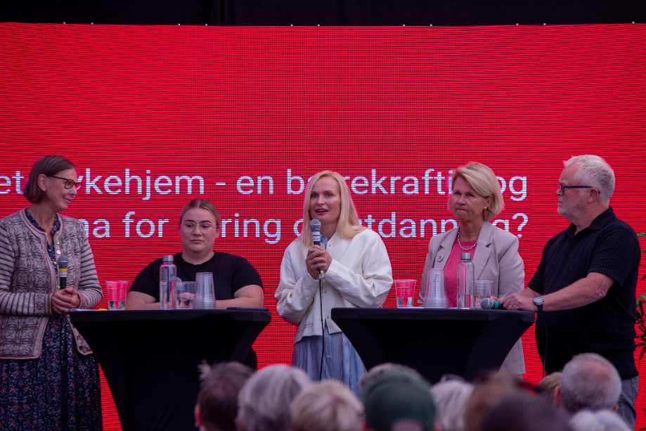 Marit Kirkevold, Michelle Marie Dervala Stephens, Ilzite Haugen, Anita Vatland og Kjell Erik Ullman Øie under Arendalsuka 2025.Under Arendalsuka tidligere i høst deltok Stephens i en samtale om Universitetssykehjemmet. Hun var tydelig på at det trengs dyktige veiledere når studentene på Univeristetssykehjemmet skal ut i praksis. Dette mener hun er helt avgjørende for at studentene skal trives og finne sin plass.