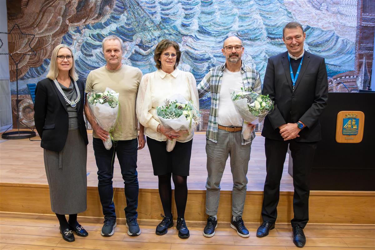 Årets 40-årsjubilanter ble markert onsdag 10. desember, og mottok blomster av ordfører Beate Skretting og kommunedirektør Magnus Mathisen som takk for lang og verdifull tjeneste i Grimstad kommune.