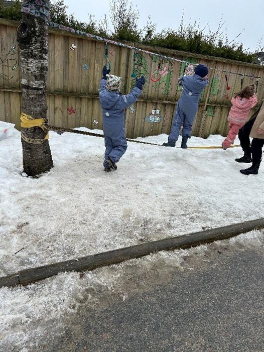 I Eide barnehage, som er en kommunal barnehage, hadde de laget seks spennende lekemiljøer med udefinerbart lekemateriell for å markere dagen. Barna og de voksne gikk gruppevis sammen i de forskjellige rommene i barnehagen og utforsket materiellet.