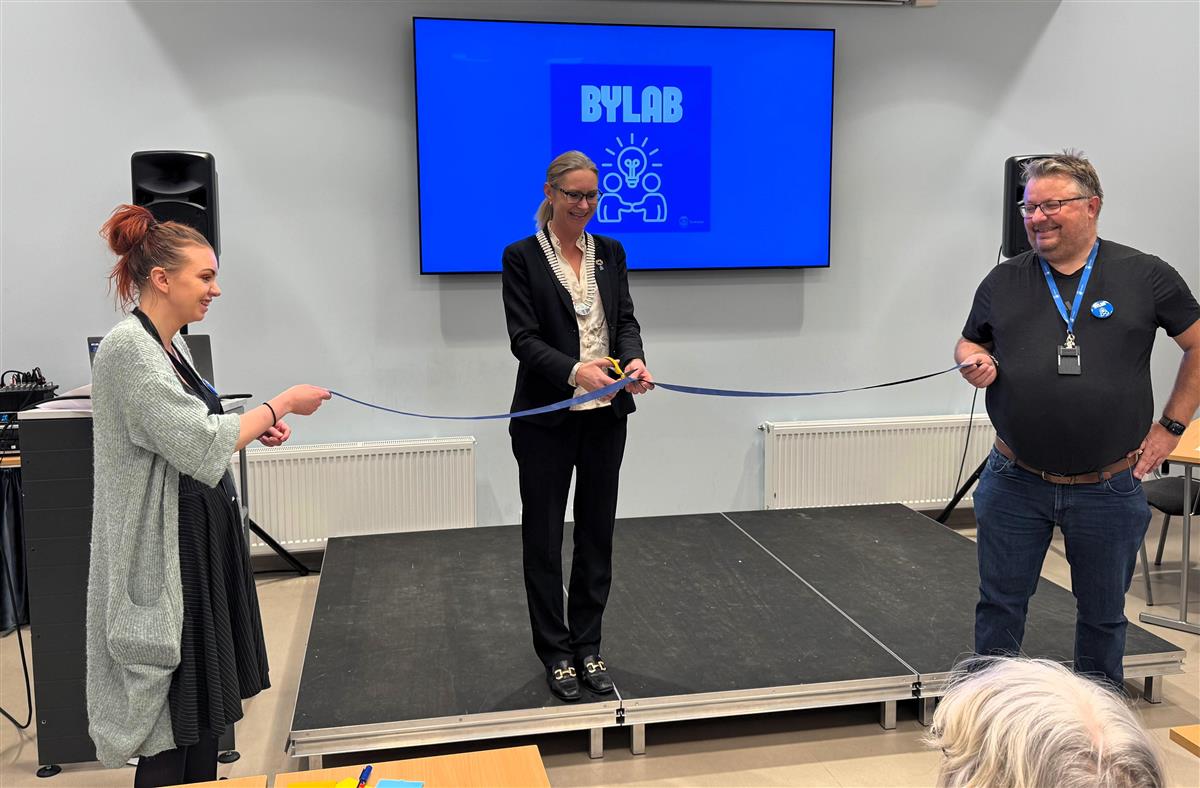 Ordfører Beate Skretting fikk æren av å klippe snora og åpne kommunens ByLab. Samfunnsplanlegger Renate Løland og klima- og miljørådgiver Per Ketil Omholt holdt snora. De har vært sentrale i arbeidet med å få en ByLab på plass.Rundt 30 personer var på plass på åpningen, hvor temaet var kommunedelplan for naturforvaltning, hvor man ønsket både medvirkning og innspill til det videre arbeidet.