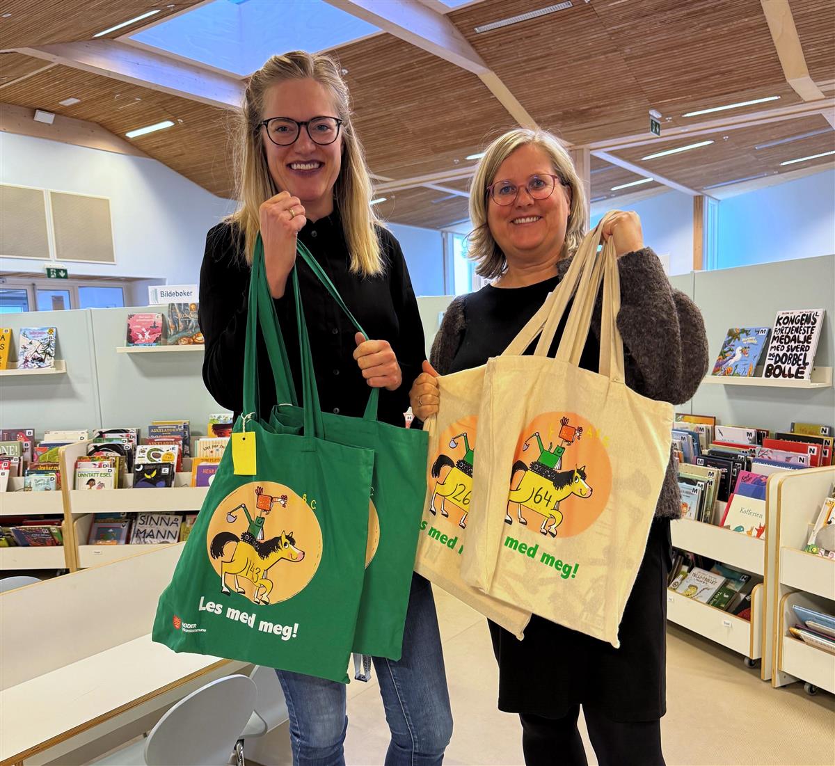 Tonje Salvesen og Olaug Øverland Sætren vil skape leselyst og leseglede hos barn i alderen 0-6 år.Tøyveskene henger i garderoben i barnehagene og gjør det lett å låne med seg hjem bøker for familier i en travel hverdag. Tall fra barnehagene viser at mange foreldrene benytter seg av tilbudet.