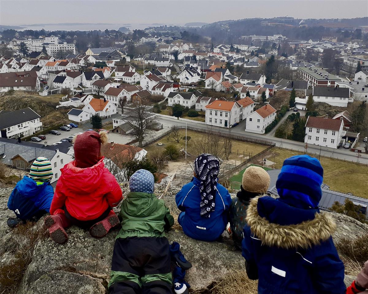 Her har vi god utsikt over Grimstad!- Aktiv lek og fysisk utfoldelse