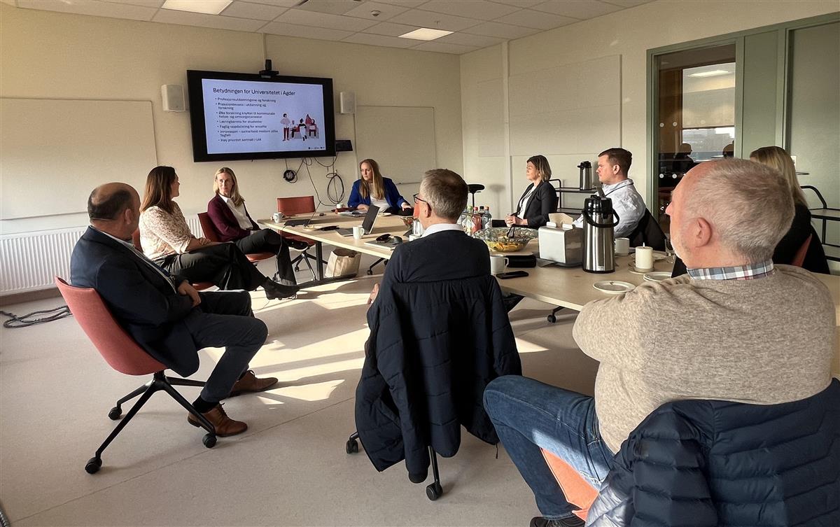 Både UiA, Fagskolen og Grimstad kommune var representert på treffet, sistnevnte ved prosjektleder Slje Bjerkås, prosjektleder Frank Eikeland og Dagfinn Fløystad. Fløystad er KrF-politiker og også leder av helse- og omsorgsutvalget.