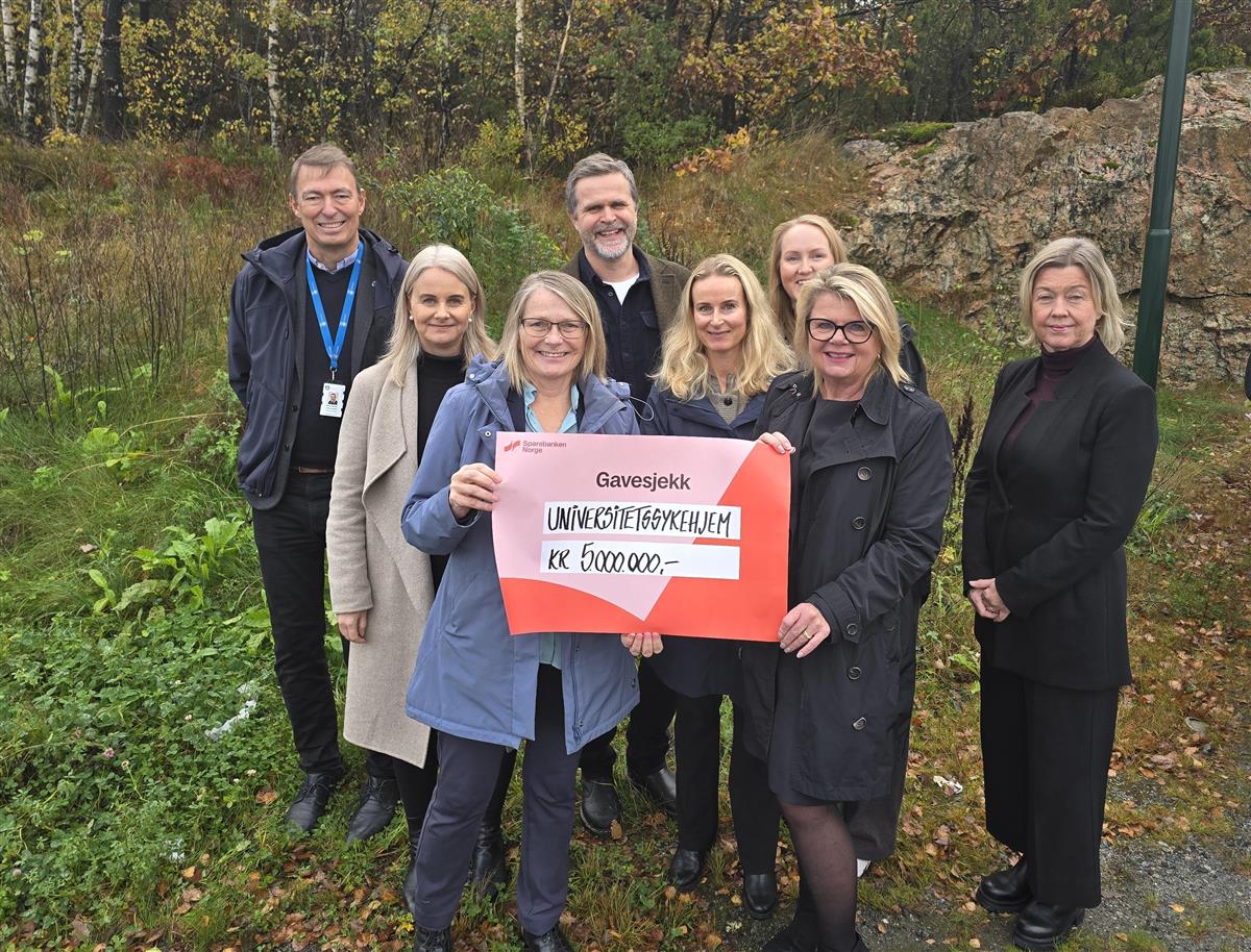 Prosjektleder for Universitetssykehjemmet i Agder, Silje Bjerkås, var svært takknemlig for gaven.